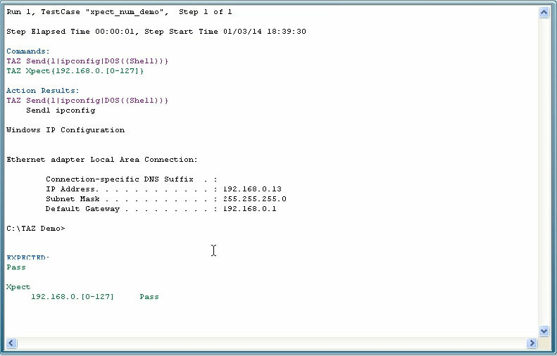 Congratulations! TAZ is now connected to a DOS shell. Next, let’s write our first TAZ TestCase .